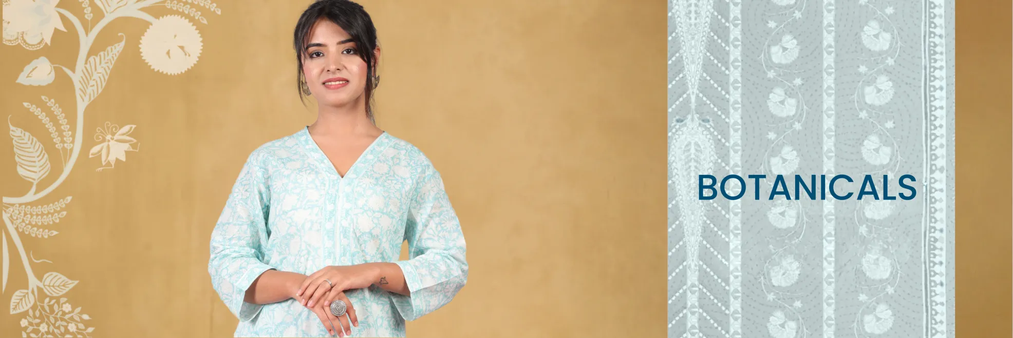 “Aafreen” Hand Block printed cotton Kurta Set with Kota Dupatta (3pc)